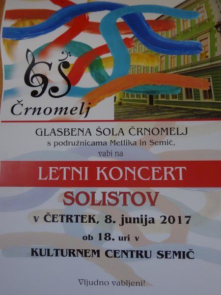 Summer is the best time for music and cultural events! Music School of Crnomelj with a subsidiary in Metlika invites you to the annual concert of soloists in Semič, which will be held this Thursday, 08.06.2017, at 18 P.M. in the Cultural Center of Semič. Feel the vibes of magnificent melodies in the beautiful area of Bela Krajina!