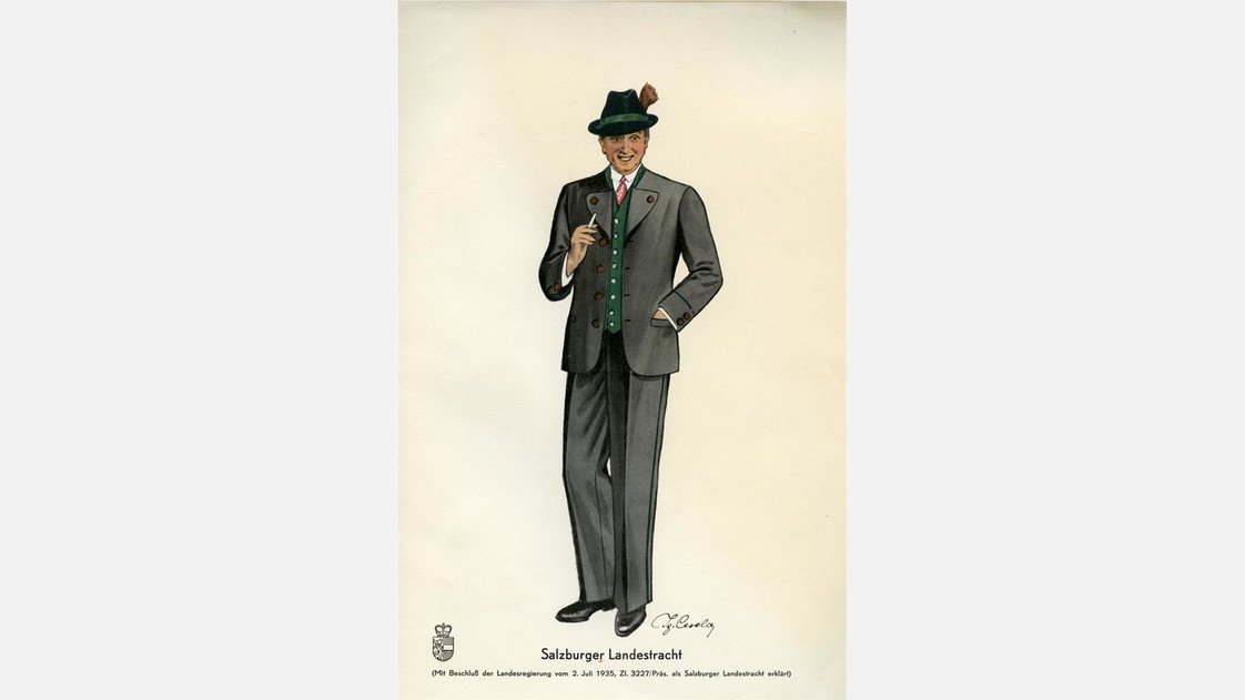 The exhibition is dedicated to the phenomenon of “Folkwear Renewal”. In Salzburg, this led to the development of a distinctive “Salzburg Folk Costume”. The focal point of the exhibition is the role of men’s folk costumes as a means of representing the province and the history of their broader impact.