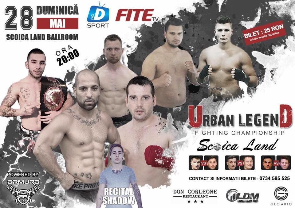 Today, 28 may, in La Scoica Ballroom, which is located just near Blue Berry house, will take place a fighting championship “Urban Legend”. The event will start at 20.00 and will host 6 best Romanian champions.