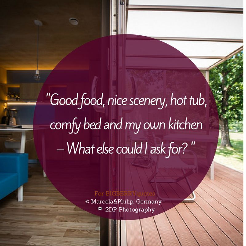 "Good food, nice scenery, hot tub, comfy bed and my own kitchen -What else could I ask for?"