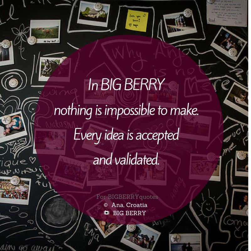 "In BIG BERRY nothing is impossible to make. Every idea is accepted and validated."
