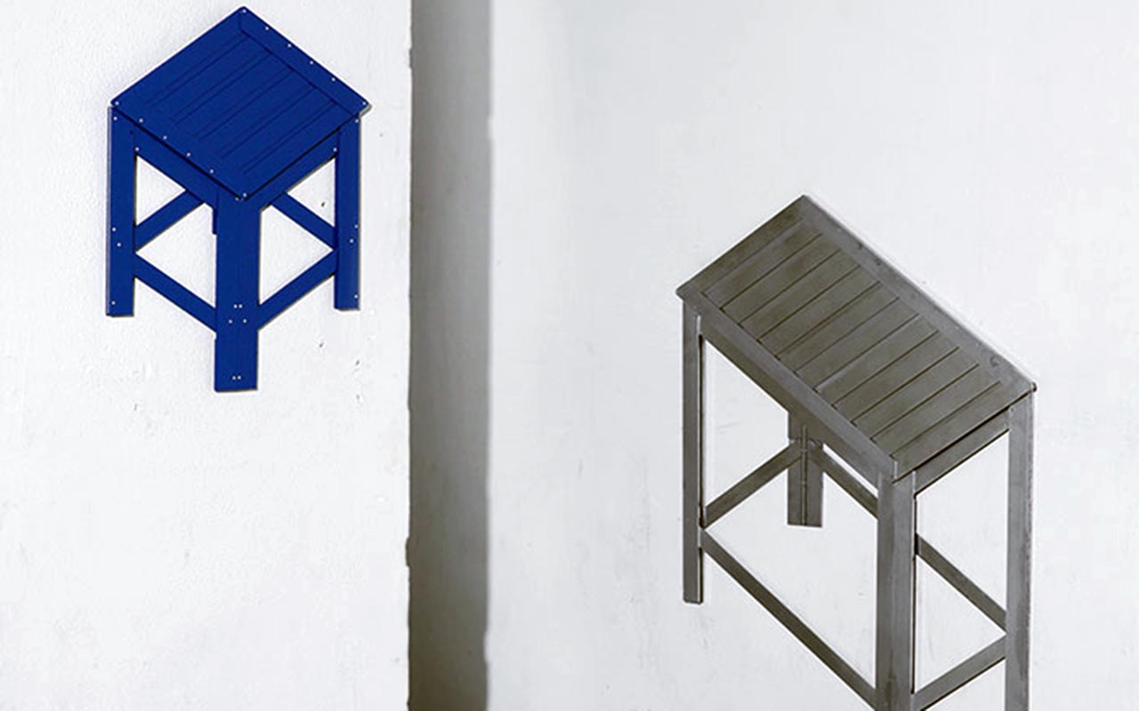 The mobile houses at BIG BERRY are rather small than big which is why they require a very well thought through interior design in order to fit everything that is needed yet keeping enugh space to live. Jongha Choi, a Korean designer, has created an innovative way to make the best use of small living spaces and smilutaneously giving it creative 2D wall decoration. Choi's collection "De-Dimension" is both simple and effective. Stools and benches, that are part of the collection, can be folded down into (alomst) 2D objects and then be hung on handy hinges on the wall or pout out of the way. Choi created the idea by "researching pop-up books and mechnical movement which was quite a time-consuming process. His 2D furniture is simply great for hosting many people, dancing with knocking into your furniture and, of course, make te most out of small living spaces.