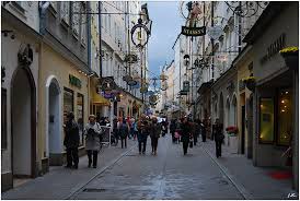 The Getreidegasse has long been a busy shopping street and is part of today's pedestrian zone. It runs parallel to the Salzach in a north-west-southeast direction and runs from the Karajanplatz and the Gstättengasse in the north-west to the Sigmund-Haffner-Gasse or the Kranzlmarkt and the Rathausplatz in the southeast. The lengthening of the Getreidegasse forms Judengasse.